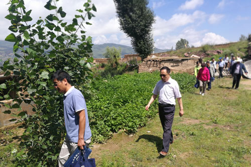 会后,吴志坚一行在安多杰的带领下实地查看了道路、涵洞、房屋受损情况,并与村干部一道商讨路面整修、涵洞边沟建设、房屋重建等修缮方案;对日扎村受灾的三户农户进行了慰问,每户发放慰问金,并到甜高粱种植实验田进行了查看。