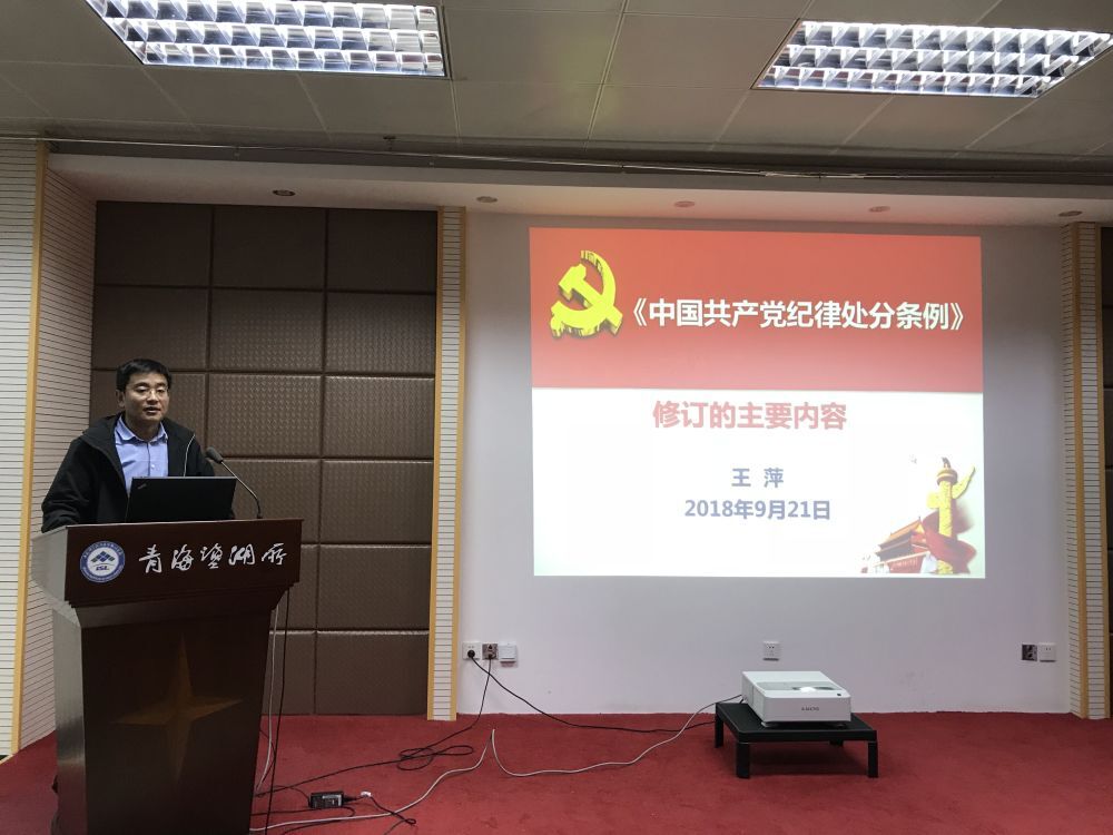 会议首先由王求贵同志传达了9月21日上午盐湖所青海盐湖所党委召开的中心组学习(扩大)会议精神;随后,研究生党支部书记董生发系统生动地讲解了《中国共产党纪律处分条例》修改要点,讲解了再次修订《条例》的目的和意义,并概括了新《条例》的8个亮点,对照老版本《条例》为大家逐一进行了解读,同时要求在座党员要深入学习新《条例》,切实增强党员纪律意识。通过进一步案例分析,董生发对《条例》规定的红线、底线内容进行了重点讲解,并与研究生党员交流讨论,互动探讨促进,达到了良好的学习效果。