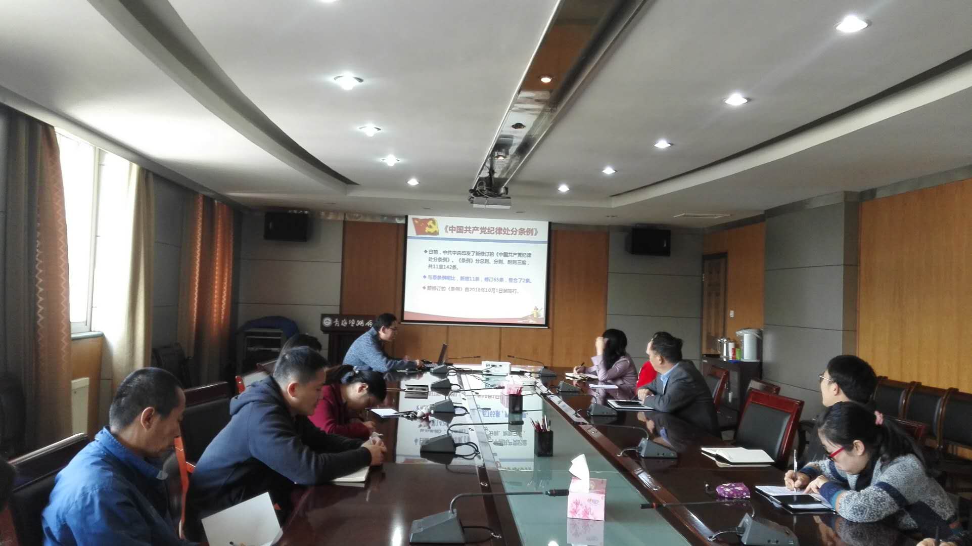 10月16日下午,青海盐湖所机关综合党支部就修订后的《中国共产党纪律处分条例》组织开展了集中学习,会议由党支部书记赵昌林主持,管理部门全体党员及入党积极分子参加了此次学习。