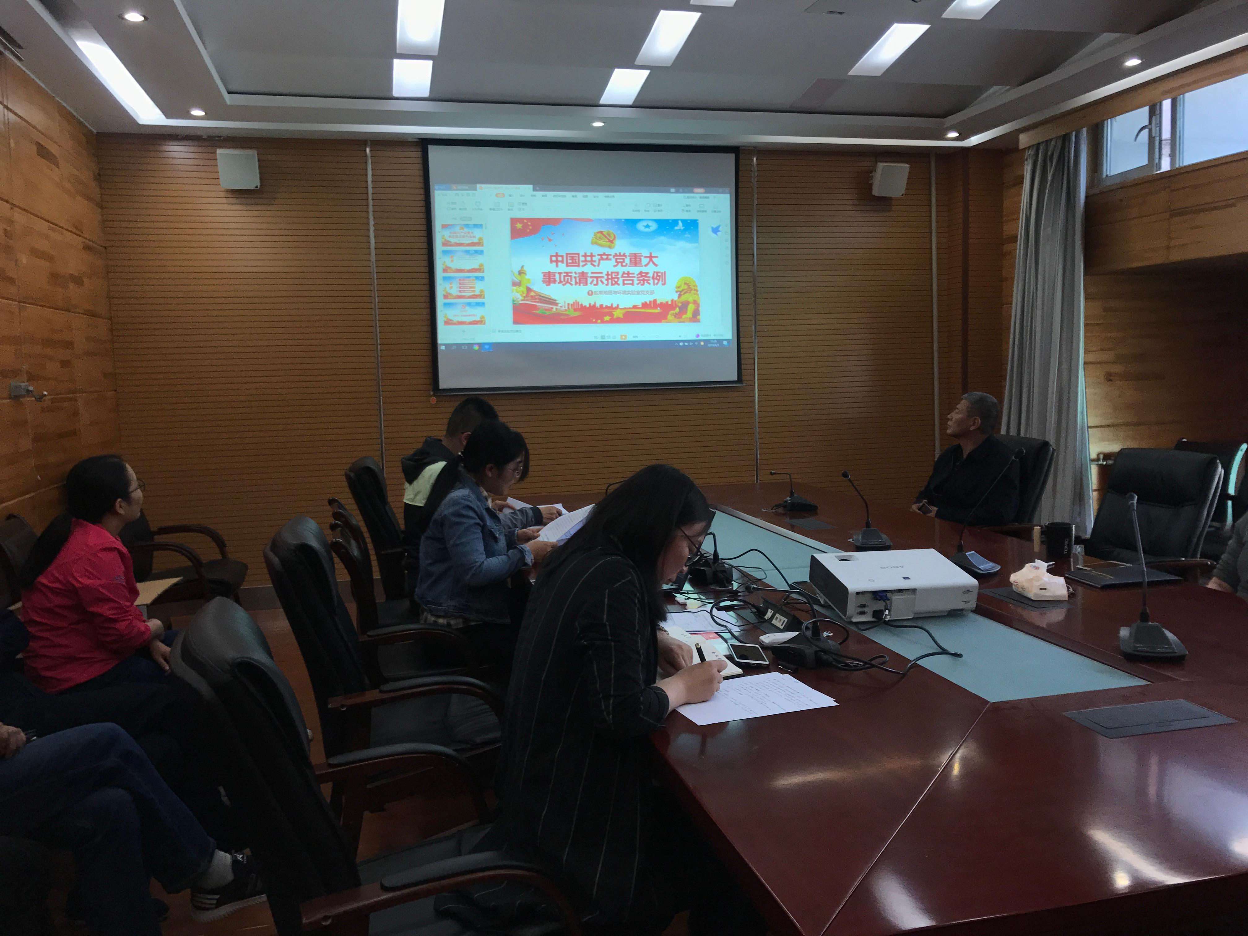会议传达了《中国科学院科研道德委员会办公室关于王玉建严重科研不端行为及其处理情况的通报》《中共中国科学院党组贯彻落实<关于进一步加强科研诚信建设的若干意见>的实施办法(试行)》的通知》《中共中国科学院党组关于进一步加强人才队伍建设的指导意见》及《中国科学院党的建设工作领导小组关于以提升组织力为重点 加强和改进研究所党建工作的通知》等相关文件的内容。会上通过PPT形式解读了文件《中共中国科学院党组关于贯彻落实《中国共产党重大事项请示报告条例》的通知》的主要内容,使各位党员充分了解重大事项请示报告的具体程序和方式。