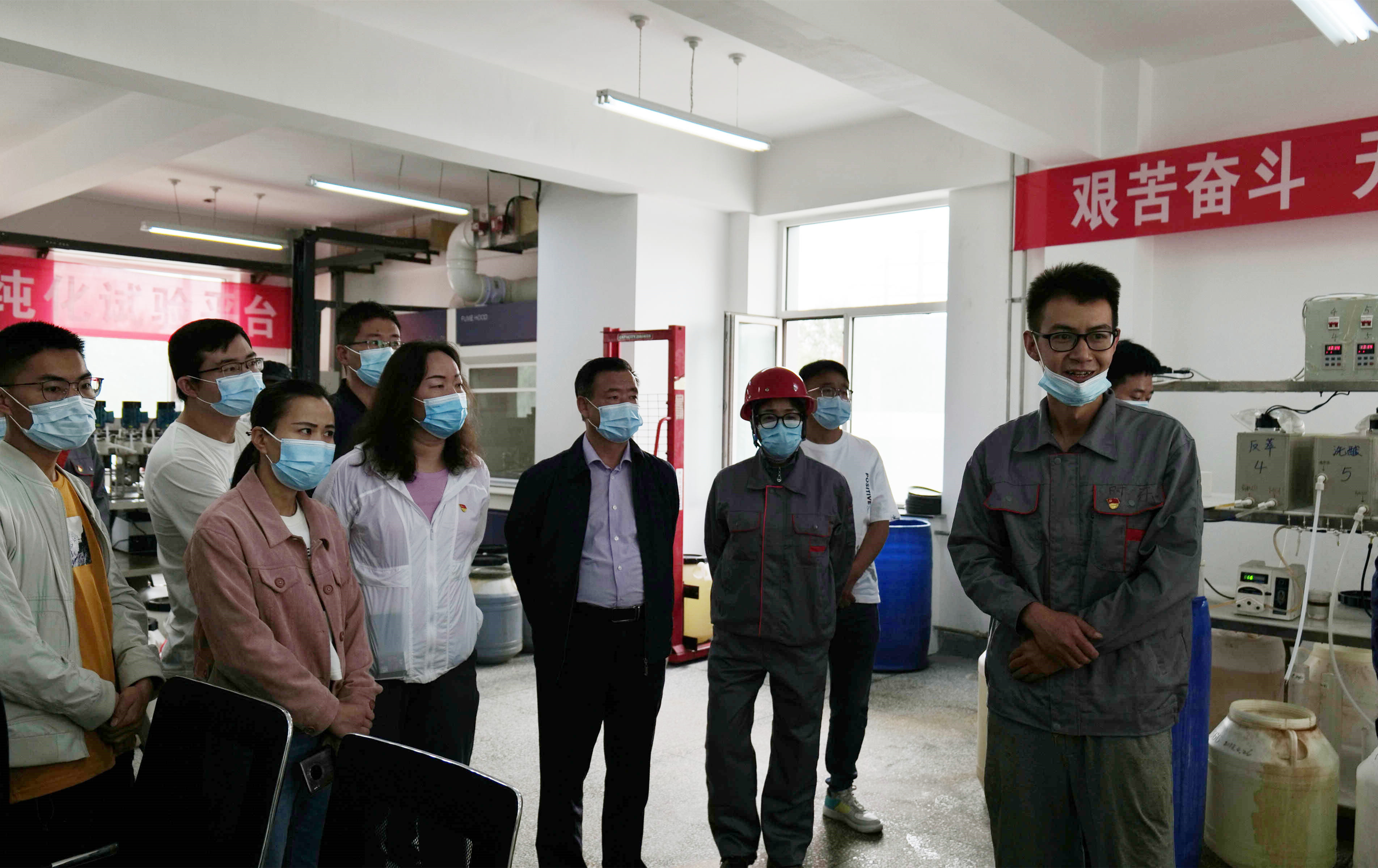 与会人员在李丽娟研究员的带领下参观了盐湖卤水萃取提锂实验室及中试车间,李丽娟向大家介绍了课题组在甘河中试基地开展科研工作的进展和成果,经过全体课题组成员的攻坚克难和辛勤付出,最终搭建起盐湖卤水萃取提锂中试装置和盐湖战略元素萃取平台。随后中试基地主任叶秀深等分别介绍了“氯化镁电解脱水制备镁合金中试”、“盐湖氯化镁脱水中试”、“镁基水滑石试验”等装置。