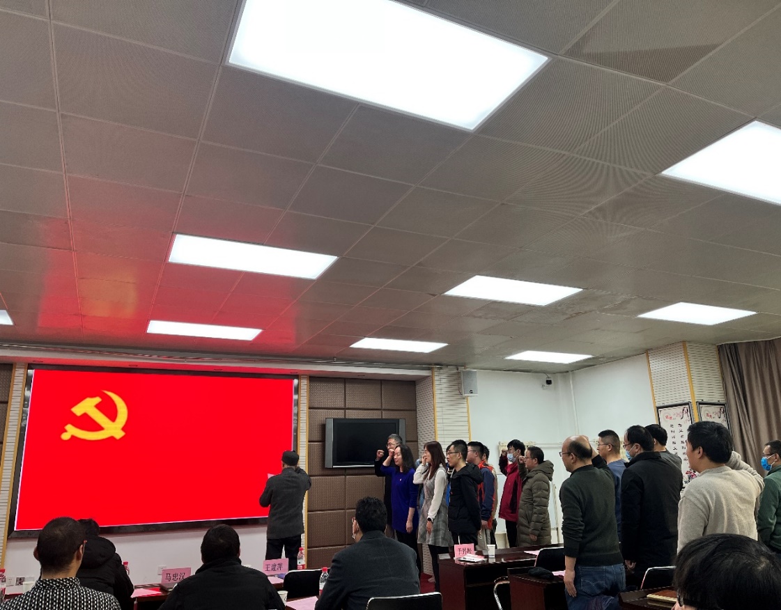 于升松作为领誓人,带领盐湖地质与环境实验室党支部全体党员重温入党誓词。与会人员认真倾听、感同身受,接受了一次“榜样力量传承,奋斗精神不止”的心灵洗礼。大家深刻认识到,新一代盐湖地质人只有深刻领悟和秉持盐湖精神,才能在日新月异的科技创新浪潮中激流勇进,在盐湖科技事业发展中做出新的更大贡献。