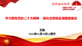 王敏以通俗易懂的语言、深入浅出的作了题为《学习贯彻二十大精神,强化支撑促盐湖国重建设》的报告,号召与会同志牢记使命,倍加珍惜“盐湖资源绿色高值利用全国重点实验室”这个平台,在科研的道路上不惧艰难,奋斗前行,勇于攀登科学高峰,增强责任感和使命感,为我国盐湖科技事业的蓬勃发展贡献力量。