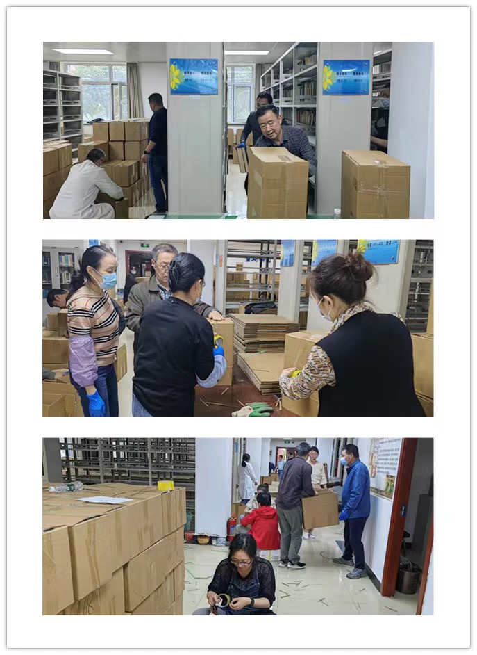 活动中,大家对图书馆馆藏图书进行了分类整理、防水防潮处理、包装打包、搬运等。过程中大家分工协作,配合默契,工作高效有序,经过一个下午的“奋战”,完成了阶段性任务。