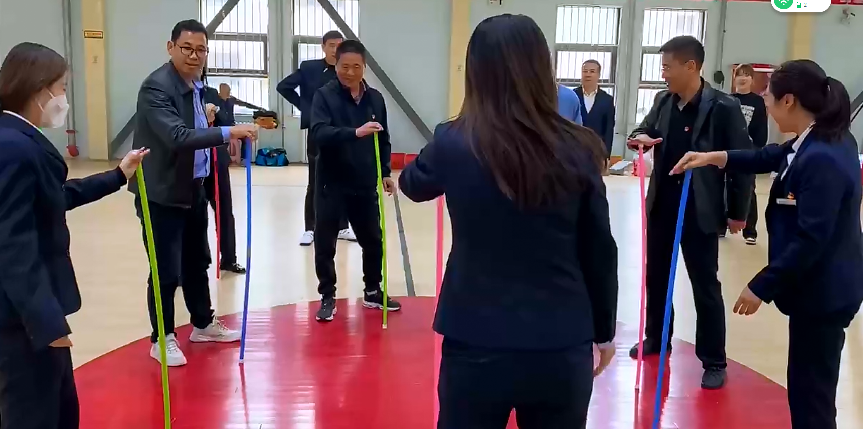 最后,双方在体育馆开展了多人参与的趣味体育活动,全体人员积极参与、斗志昂扬,激烈角逐、奋力拼搏。在拔河比赛、篮球赛、协同运球等集体项目对抗赛中,大家争先恐后,默契配合,赛出了水平,获得了友谊。