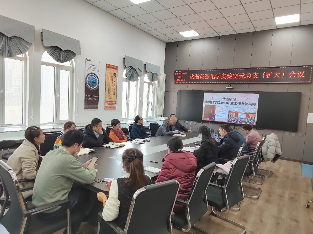 1月15日,青海盐湖所盐湖资源化学实验室党总支召开党员(扩大)会议,传达学习中国科学院2024年度工作会议精神。实验室全体党员和职工参加会议,会议由党总支书记、实验室副主任刘忠主持,党委联系人、实验室主任王敏参加了会议。