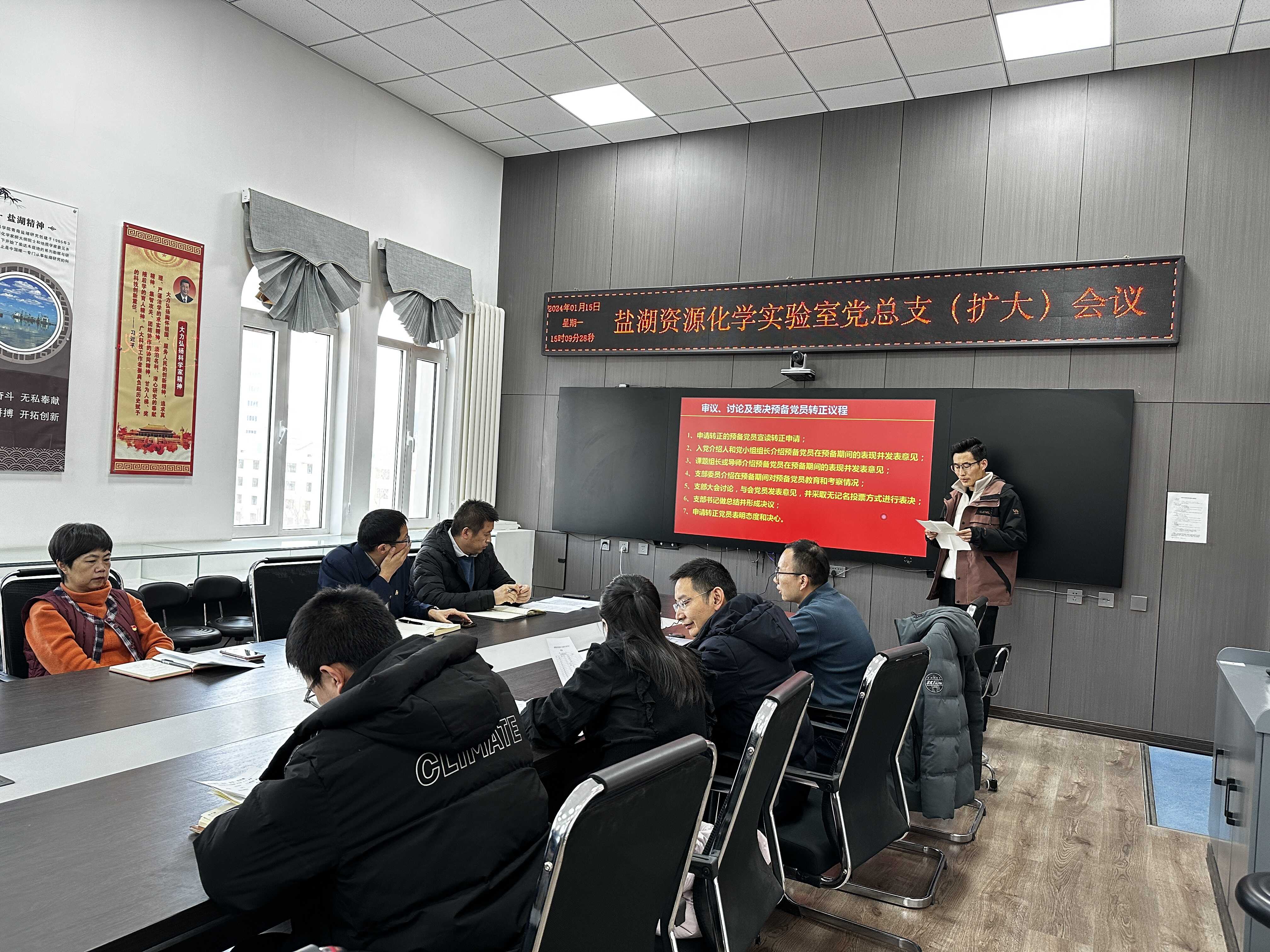 1月15日,青海盐湖所盐湖资源化学实验室第一党支部举行党员大会审议表决预备党员张世春转正事宜。支部全体党员、支部党委联系人王敏、党总支书记刘忠参加会议,会议由支部书记赵有璟主持。