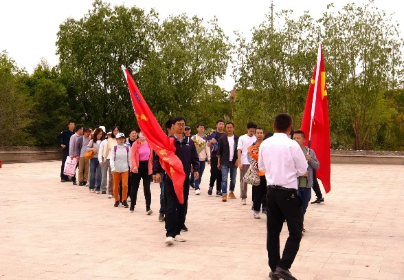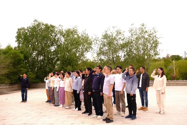活动途中在大巴车上大家积极参与党史知识竞赛,在轻松愉悦的问答过程中让参与活动的党员进一步温习了党史知识;与此同时由总支书记刘忠带领大家活跃气氛,集体唱响红歌。接着,广大党员同志来到了气势恢宏、美丽如画的龙羊峡水电站大坝旁,在讲解员声情并茂的讲述下,同志们对龙羊峡水电站的建设以及随之升华凝聚的“龙羊精神”有了深刻的了解。龙羊峡水电站建设从1976年开始动工,到1979年实现工程截流,再到1989年6月投产,历时13年,数万前辈在长期缺氧的高原环境下,艰苦奋斗,勤劳开拓,这种不畏艰难,勇于开拓的“龙羊精神”深深的激励了广大党员同志。随后,全体党员于龙羊峡党旗广场面对党旗,举起右手庄严宣誓,重温了入党誓词,坚定了党的道路和决心,激发了党员的责任感和使命感,增强了党员的奋斗精神。最后,在总支的组织下全体党员进行了红色拓展活动—珠行万里、重走长征路等团体小游戏,大家通力合作,手眼并用,勇闯难关。游戏虽小却让大家深刻体会到大局团队意识和精诚合作精神,这正是我们科技工作者必须的素质和品质。