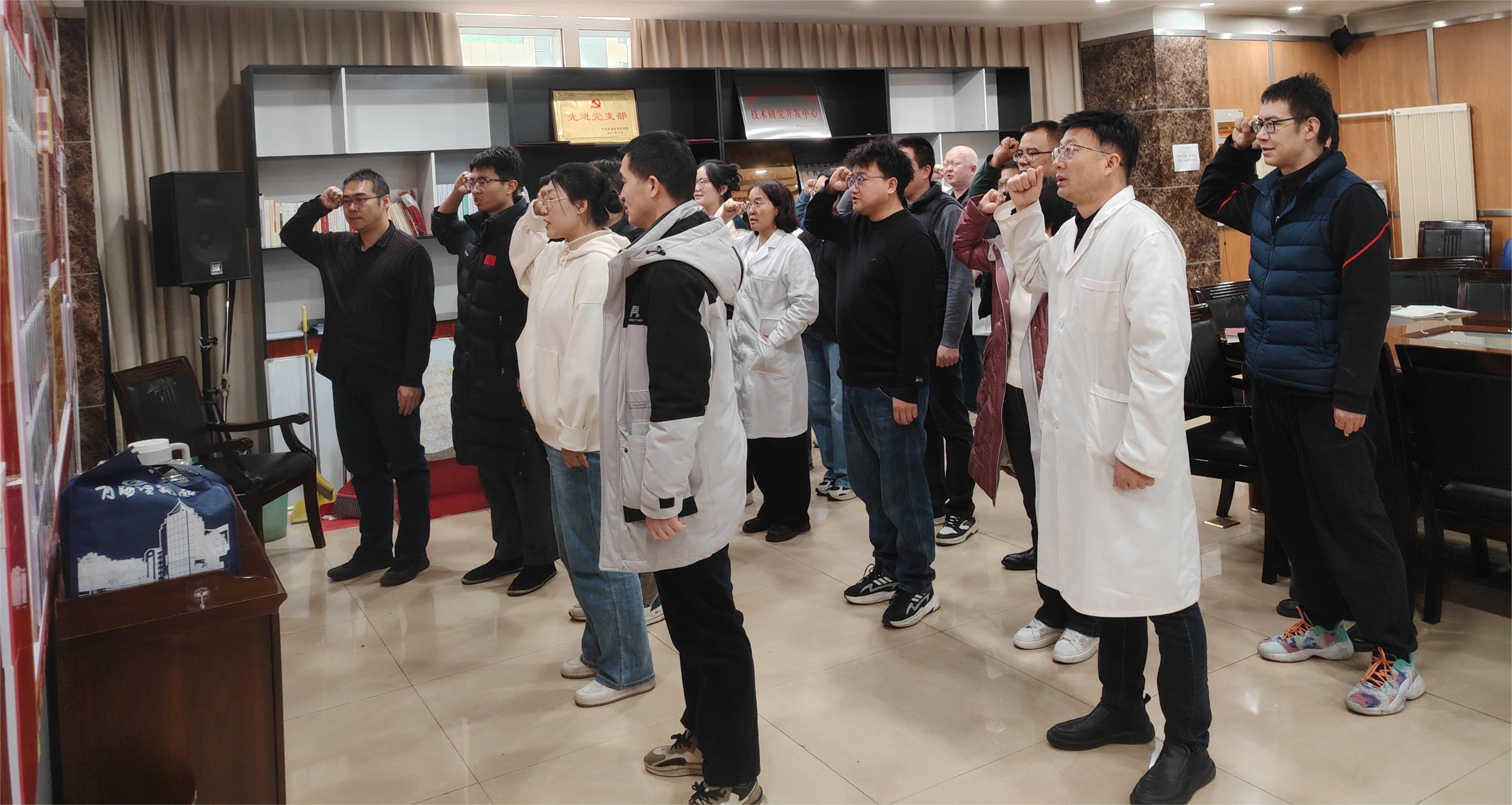 会议就孙进贺、朱永杰两位同志转为正式党员和樊洁、秦靖洲两位同志接收为预备党员事宜做了详细说明。随后,入党介绍人、党小组组长、支部委员及党内外人士分别做出了评价,并提出针对性意见和希望。经无记名投票表决,同意孙进贺和朱永杰两位同志的转正申请,同意接收樊洁和秦靖洲为预备党员。随后,与会党员重温了入党誓词。