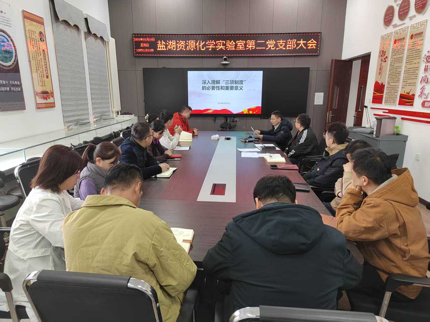 3月21日,青海盐湖所盐湖资源化学实验室第二党支部召开了全体党员大会。会议主要有两个议题:一是《深入理解“三项制度”,抢占盐湖科技制高点》主题报告集中学习;二是“我能为研究所做什么”主题讨论会。第二支部全体党员参加会议,会议党支部书记刘忠主持。