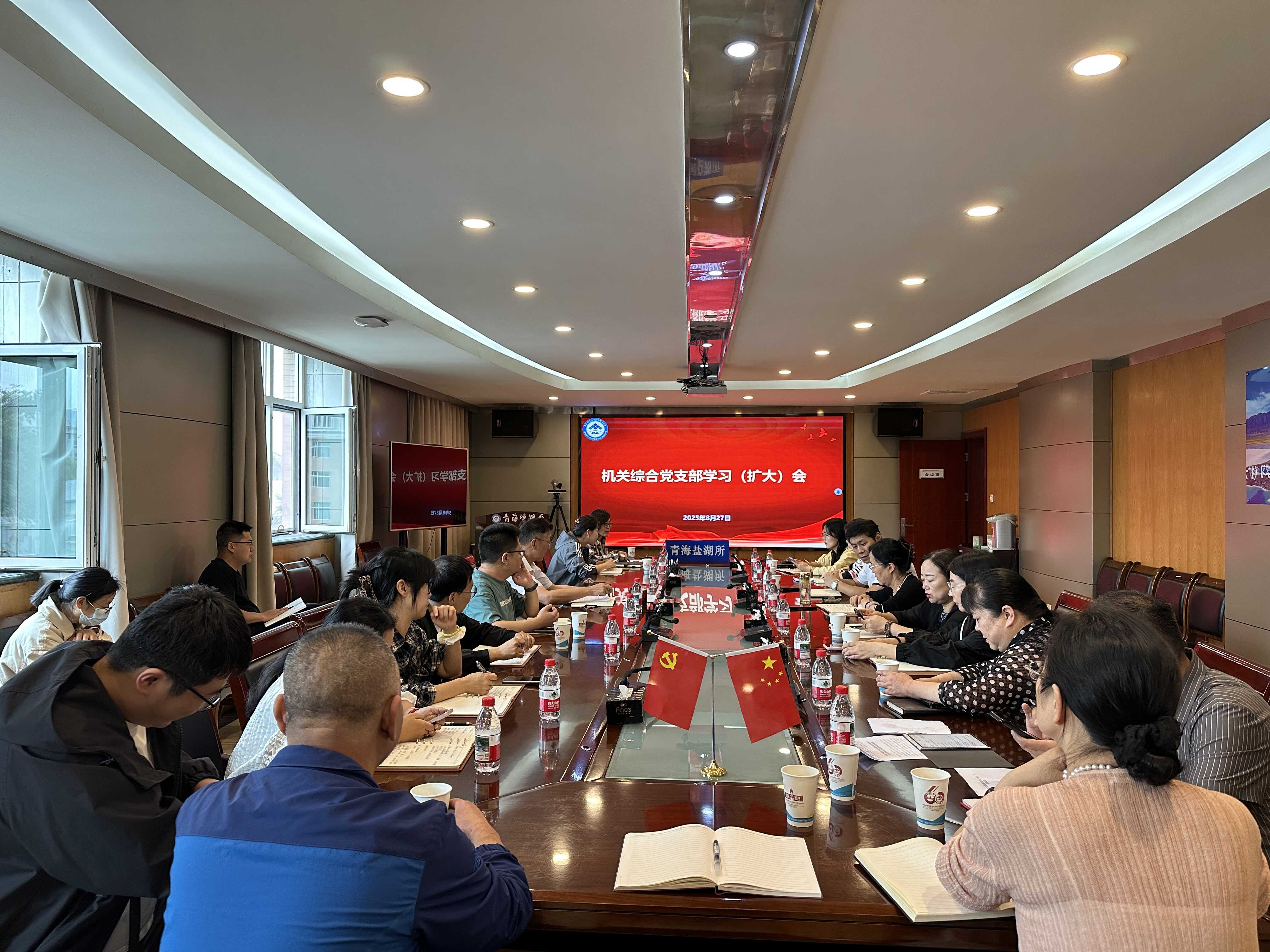 8月27日,青海盐湖所机关综合党支部召开支部学习(扩大)会议,传达学习中国科学院党组2025年夏季扩大会议精神。机关各部门全体人员、纪委书记杨勇刚参加会议,会议由党支部书记郭敏主持。