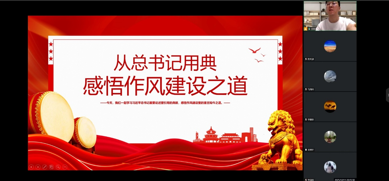 为深入学习贯彻党的二十大精神,切实加强科研人员作风建设,筑牢科研工作的作风保障。12月11日,盐湖地质与环境实验室党支部第一党小组以线上形式召开作风建设专题学习会。会议由党小组组长王顺同志主持,第一党小组全体党员参会。