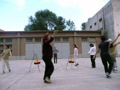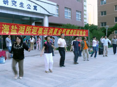 7月17日晚,为迎接奥运,体现奥运精神,点燃锅庄激情,我所在研究生公寓前的广场举办了迎奥运消夏全民健身篝火晚会。借此放松心情,丰富我所职工和研究生的业余生活,增进大家之间的交流。