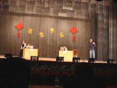 12月28日晚7:30,兰州教育基地迎新元旦晚会在漂亮飞舞的烟花中正式开始,首先是兰州分院杨院长为我们致辞!他带来了对兰州分院各所的祝福和对同学们的的关心!元旦晚会的节目在充满青春活力的有氧搏击操中开始,晚会的节目丰富多彩,有西高所带来的小品,寒旱所美丽姑娘们带来的舞蹈月亮女儿,近代物理所的舞蹈涛声依旧,兰州化物所的现代舞,图书馆兰州分馆的舞蹈,我们所的舞台剧,相声等,让大家度过了一个愉快的夜晚。 我们所的舞台剧〈大学,我们的恋爱季节〉,将我们带回大学校园的时光,让我们回忆起我们大学时代那段或苦涩或甜美的爱情,这个舞台剧是我们所刘志启同学自编自导的,这个舞台剧的成功演出也同时凝聚了他们剧组成员其他7名同学的汗水,他们在演出之前进行了多次的排练,李青海的精彩而夸张的表演让大家开怀大笑,我们这个舞台剧受到了杨院长的好评,给我们盐湖所争得了荣誉,让我们感到无比的自豪。我们所李廷伟和仝彩荣的相声〈西哥东妹〉的表演也很精彩,赢得了大家的好评。