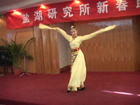 随后,联欢活动在物业分会《又唱浏阳河》的歌舞声中拉开了帷幕。我所各个分会为此次活动准备了舞蹈、声乐、器乐等多种形式的艺术表演,内容丰富多彩,形式多种多样。演员们精彩的表演,不时博得观众的掌声和欢呼声,尤其是离退休老同志的京剧表演,引起了全场观众的喝彩,为联欢会增添了浓厚的热烈气氛。具有民族特色的扇子舞《四季歌》和节奏动感、旋律欢快的街舞舞蹈将联欢会推向了高潮。整个联欢活动中,表演者用他们优美的舞姿、嘹亮的歌声以及韵味十足的乐器演奏等,展现了对未来美好生活的祝福和向往。最后,联欢会在《明天会更好》的小合唱中缓缓落幕。