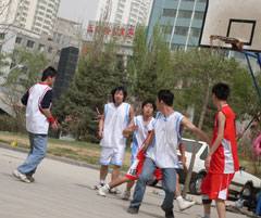2009年4月25日,西宁市区太阳高高悬挂,又是一个阳光明媚的日子。在我所学生会的组织下,我所研究生与青海大学医学院的研究生们进行了一场篮