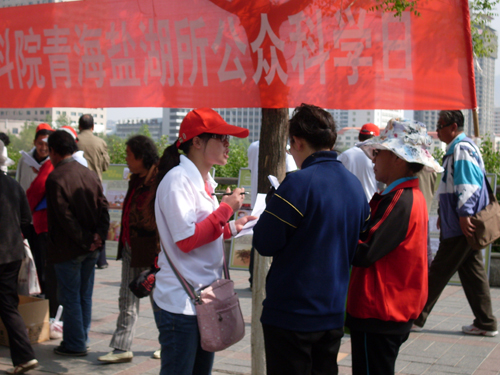 2011年3月11日,日本发生强烈地震,由此引发国内“抢盐”风波,巨大的恐慌顿时在全国蔓延,食盐真的能够防辐射吗?2011年3月15日,央视“3.15”晚会曝光双汇瘦肉精事件,全国一片哗然,瘦肉精到底是什么东西?对人体有何危害?又如何去识别呢?馒头、食用油、奶粉、装修这些与我们日常生活息息相关的东西却纷纷变成了染色馒头、地沟油、毒奶粉、甲醛超标,所有的一切我们又该如何去应对呢?2011年5月14日,青海盐湖所的科普志愿者们充分发挥自身专业优势,走上街头,来到西宁市中心广场,为过往的市民上了生动一课。