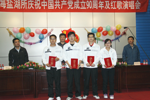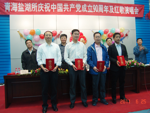 梁青生副所长首先宣读了《关于青海盐湖所纪念建党90周年表彰先进党支部、优秀党员的决定》,表彰了重点实验室党支部、研究生党支部两个先进党支部和郭敏、云山等二十二名优秀共产党员。希望受表彰的先进集体和个人要珍惜荣誉,戒骄戒躁,继续发扬求真务实、勇于创新的精神,积极探索加强党的建设、推进创先争优的新理念、新观点、新方法,进一步做好科研、支撑、管理和服务工作。希望全体党员干部、广大职工认真学习他们的先进事迹和经验,不断保持和发扬共产党的先进性,充分发挥党员先锋模范作用,为推动中科院“创新2020 ”和青海盐湖所“十二五”规划顺利实施做出更大的贡献。