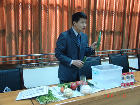 张伟从贴近生活的蔬菜如西红柿、黄瓜、菜花等的正确选购讲起,讲解了常见农药残留量超标的七种蔬菜的辨别、较安全的洗涤和食用方法,既讲到了科学饮用自来水、科学鉴别常用蔬菜的方法,又讲述了米、面、粮、油、肉等日常食品的质量鉴别和空气污染及室内装修对人体造成的伤害。图文并茂、列举实例、深入浅出的解答,实用的辨别知识受到了大家的欢迎。