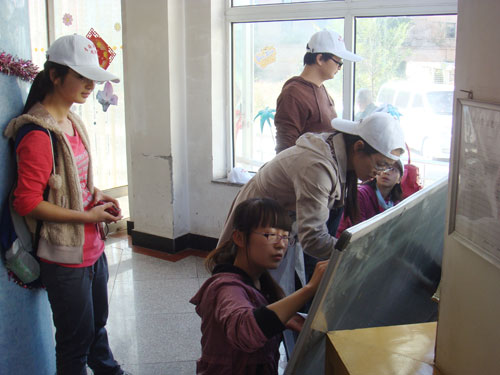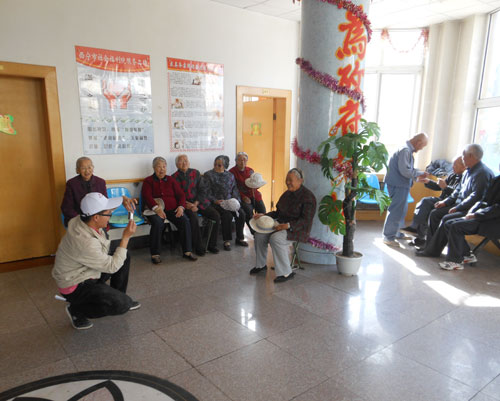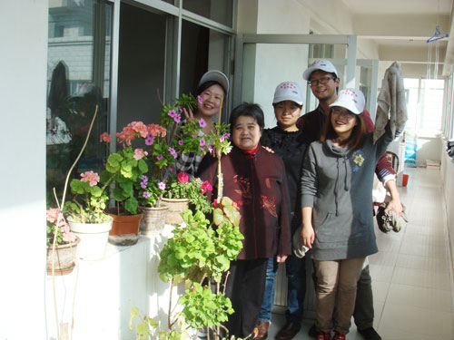 随后志愿者又前往老人公寓, 他们陪老人聊天,亲切的家常话消除了初次见面的拘谨,大家一见如故。志愿者也分成了不同的小组:卫生打扫、给老人拍照、出节日黑板报等等,忙的不亦乐乎。 也许因为见到晚辈高兴,老人们都和志愿者聊得特别开心。有的老人甚至通过自己的人生阅历来给志愿者提些将来择业的建议,真诚希望年轻人能有好的前程;有的老人对自己的孙子学习比较担心,志愿者就把自己高考的经验和他们一起分享。满屋子的老人与青年,谈的火热,聊得尽兴,虽非亲人,胜似亲人。一位老人高兴地说,当天不仅她的小女儿来看她了,还有好多志愿者来陪她聊天说笑,自己虽然不认识他们,但是觉得很亲切,没有陌生感。