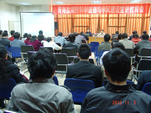 11月5日下午,中科院兰州分院党组书记、副院长谢铭应邀为青海盐湖所做题为“入职入学廉洁教育第一课”报告。所领导和中层干部,科研人员,新入所职工和学生共计七十余人参加了此次报告会,会议由所党委书记胡彦明主持。