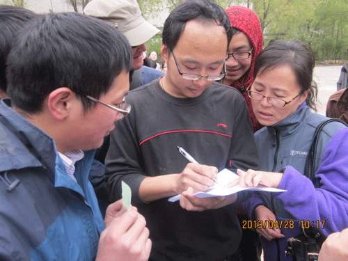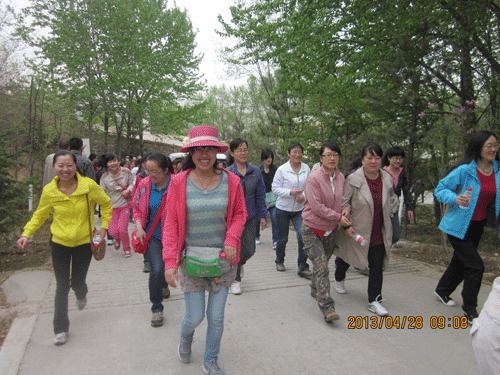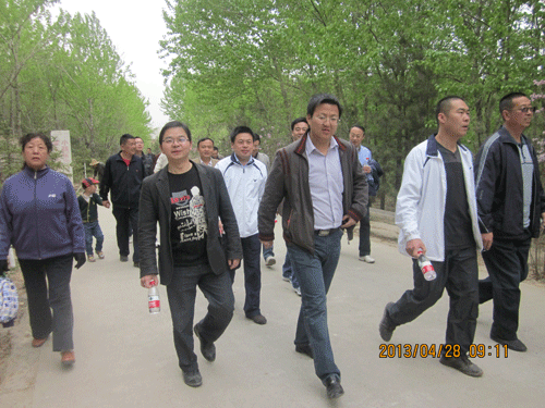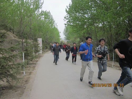 活动地点是植物园西山。上午9点整,全部职工和学生在西山脚下集合完毕。所工会主席党小刚宣读完比赛规则后一声令下,所有参赛队员就你追我赶,沿着蜿蜒山路冲向山顶。经过激烈角逐,选手之间渐渐拉开了距离。快到山顶时,虽然大家已是精疲力尽,但是他们还互相打气,互相鼓励,卯足了劲往山顶冲去。