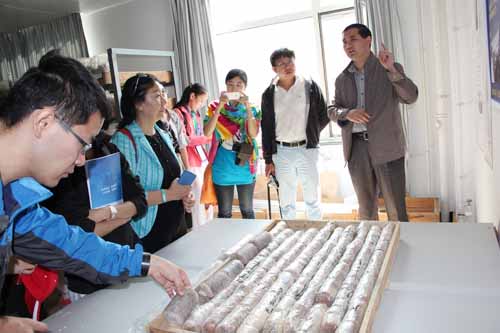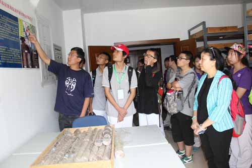 在盐湖地质与环境实验室,相关负责人给同学们介绍了青海盐湖所多年来在国内外开展的主要科学研究工作,特别是2006年以来在老挝开展的钾盐地质勘探研究工作,让同学们通过现场触摸和观察,进一步了解和认知岩芯样品,加深了同学们对钾盐以及钾盐的开发对我国农业安全的重要意义的认识。