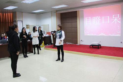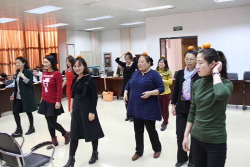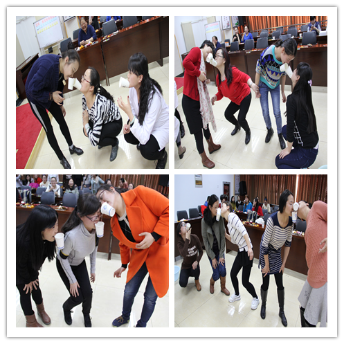 联欢活动首先在呼吸拉升操中拉开序幕,大家凝神聚气,在舒缓的音乐声中拉伸身体,放松心情。随后进行了猜词游戏、纸杯传水、顶橘子等趣味活动,大家积极参与,现场气氛热烈,特别是纸杯传水游戏将整个活动推向高潮,最后通过知识问答的形式为大家普及关于女性权益的知识。