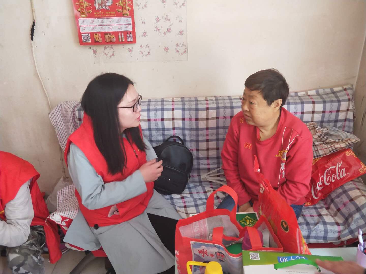 大娘所住的房屋特别破旧,冬天没暖气,窗户还漏风。大娘给我们讲述她的处境时,自始至终眼中都是挂着泪水,她说冬天的时候日子特别不好过,自己家住三楼,楼梯里没有灯,台阶也特别高,还经常停水,每次都要去一楼打水,这对于腿部受伤的她来说是特别艰难的一件事,生活的困苦让她时常无法入睡。在得知大娘的这些困难后,志愿者们安慰大娘要积极面对生活,志愿者们也会想办法寻求政府的帮助,创造条件帮助她改善住宿条件,如果符合条件还可以帮她申请低保,从根源上改善大娘的生活。