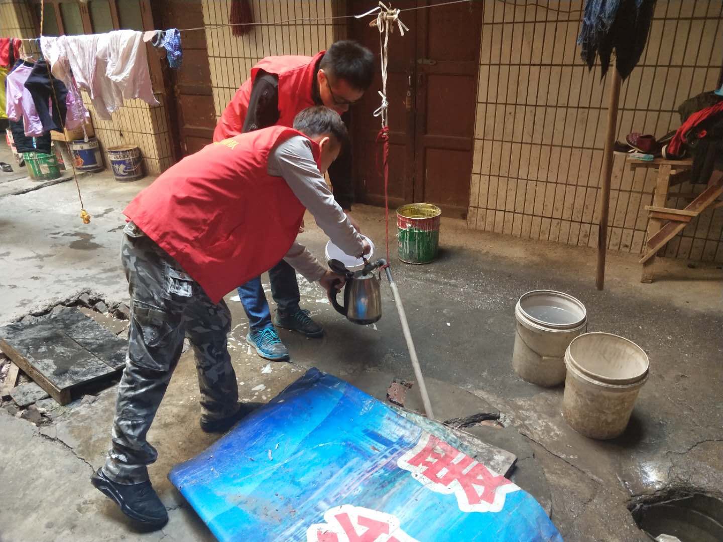 志愿者帮忙打水