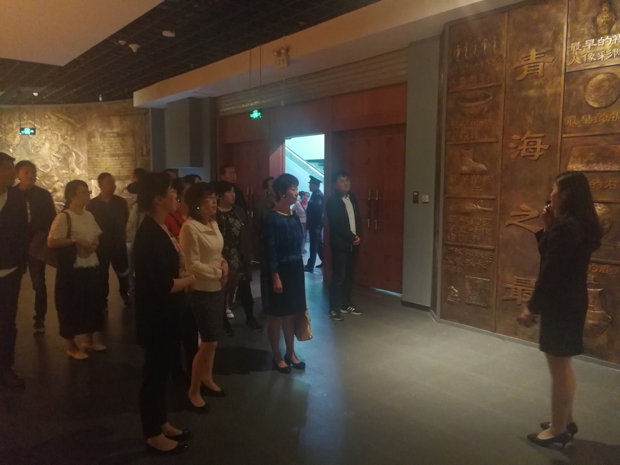 在青海省博物馆讲解员的生动详实讲述中,支部党员怀着崇敬激动的心情,一起参观了《江河源文明——青海历史文物陈列》展,分为《史前文明遗珍》《历史文物精粹》两大部分,其中《史前文明遗珍》设有“遗骨化石”、“凿石创业”、“抟土成器”、“”雕骨为饰、“琢玉以饰”、“熔金造物”六个专题展览;而《历史文物精粹》又分为“道通东西汉风西渐”、“唐蕃遗事 千古传诵”、“弓马天下 江山一统”、“多元归一 文化荟萃”四个单元。馆藏珍品按年代排列有新石器时代、青铜时代、魏晋、唐、西夏、元、明、清、民国各个时代。《青海省非物质文化遗产》展厅展出的有实物、模型以及场景重现等。其中乐都七里店的九曲黄河灯会,民和土族纳顿节,热贡艺术的唐卡、壁画、堆绣、雕塑等绘画造型艺术,湟中农民画、湟中壁画、湟中泥塑制作工艺、湟中银铜器制作及鎏金工艺、湟中陈家滩传统木雕技艺、青海坛城艺术造型、青海塔秀寺彩粉坛城制作技艺 、加牙藏族织毯技艺等,都有展示。青海省人民政府分三批公布非物质文化遗产名录150项,其中有64项被列入国家级非物质文化遗产名录,《热贡艺术》《格萨尔》《花儿》《藏戏》四个项目,入选联合国教科文组织人类非物质文化遗产代表作名录。
