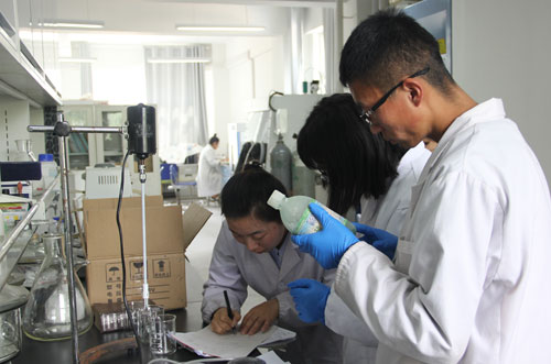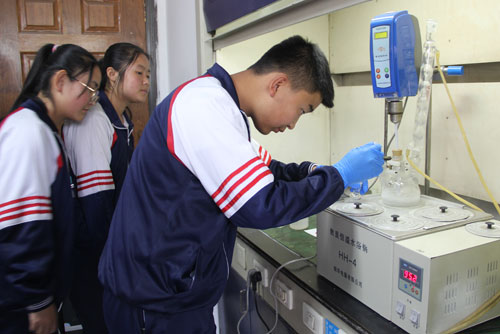 随后,在青海盐湖所年轻科研人员和博士的带领下,同学们根据个人兴趣选题、分八组各自参与了一个完整的科研小课题,开展了一系列小实验,体验了一把“微科研”过程。实验内容涵盖锂离子电池的制作、彩色温度计的制作、明矾的制备、火山爆发等,实验紧扣盐湖主题,同学们非常珍惜这次机会,在富有经验的老师指导下,团队紧密合作,明确分工,认真并饶有兴趣地亲自动手操作,并完成了多媒体总结报告。