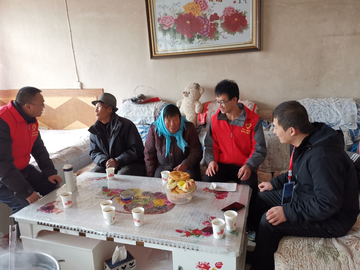12月22日,中国科学院青海盐湖所的志愿者们跟随郭明义爱心团队青海援助分队一起前往湟中县水滩村看望四户定点帮扶困难户。