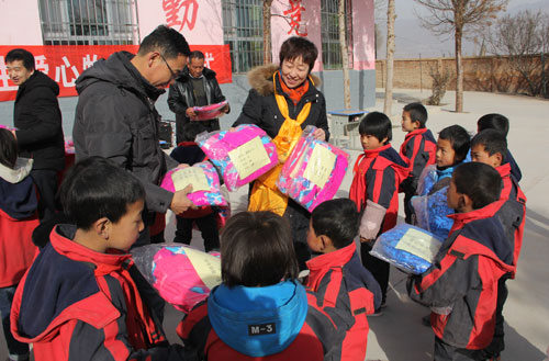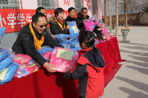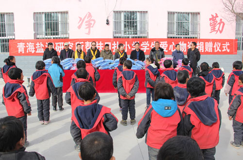 日扎村是一个地处大山阴坡山腰的自然村落,山大沟深,山路崎岖,冬季寒冷而又漫长。日扎村小学是杏儿乡中心学校的一个教学点,有教师3名,学生近70余人。经过认真调研,青海盐湖所从实际需求出发,为全校师生捐赠了总价值约一万元保暖防寒衣,为远在山区的孩子送去了一片爱心和温暖。