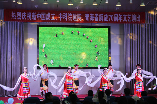 9月20日,由青海盐湖所党委主办,所工会承办的庆祝“三·70”文艺汇演在学术报告厅举行。全所职工和学生精心准备的集合唱、独唱、舞蹈、诗朗读为一体的十四个节目同台竞演,在新中国成立70周年、中科院建院70周年、青海解放70周年之际,用歌舞表达盐湖科技工作者对祖国的美好祝愿,展现盐湖人奋发有为的精神风貌。