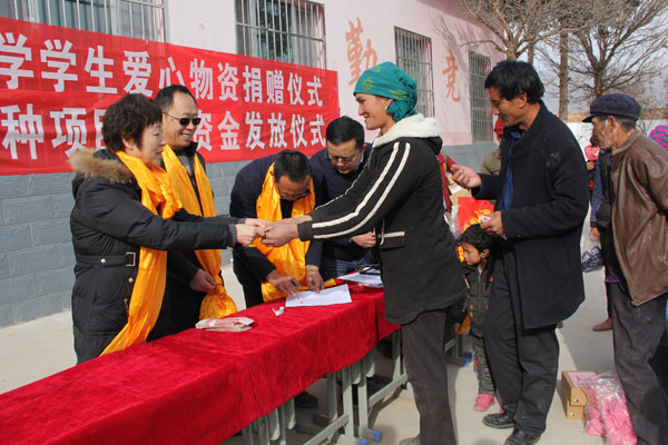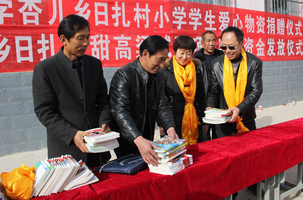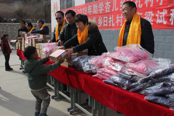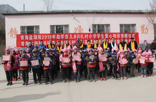 青海盐湖所扶贫工作领导小组成员还到日扎村小学看望了72名小学生,为他们赠送了价值1.3万余元的风雪帽、户外鞋、围巾、手套等御寒过冬的礼物,并给小学阅览室赠送了一批少儿读物。