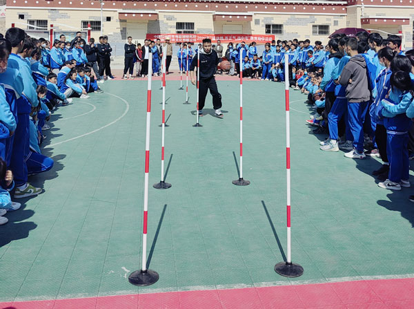 下午,“健体魄,养正气,战中考”体育助学活动在中心学校操场正式拉开序幕。西宁奔跑体育文化有限公司为学校捐赠了篮球、队服、考试用握力计等,并现场开展了中考体育项目培训。西宁奔跑体育文化有限公司教练针对体育中考3+2中的投掷实心球、跳绳、立定跳远、运球绕杆、坐位体前屈等项目进行了全面细致的培训,从发力技巧、站姿站位、用时最短等方面逐一讲解,让九年级临考学生的体考技能得以全面提高,学生们也跃跃欲试,积极参与,一个个收获满满,对打好中考体育第一枪信心倍增。最后,还举行了杏儿乡中心学校联队和西宁奔跑体育文化有限公司队篮球友谊赛。