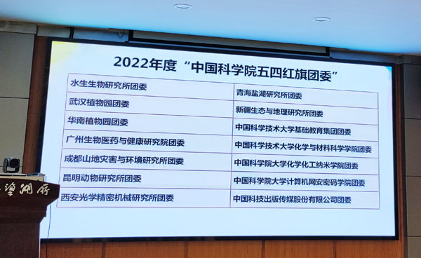 活动中表彰了2022年度中科院“两优两红”获奖个人和集体,青海盐湖所团委获“中国科学院五四红旗团委”荣誉称号。