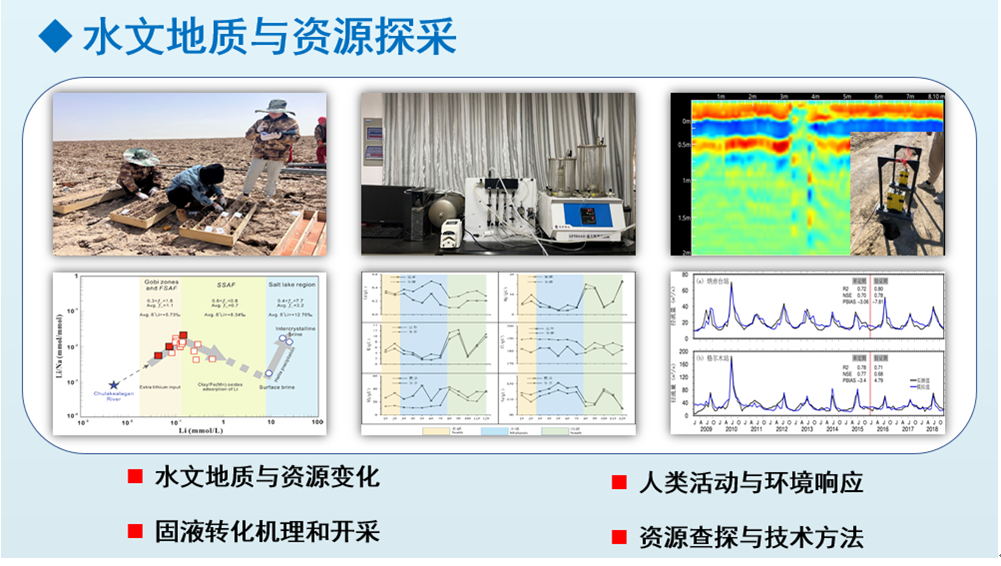 水文地质与资源探采课题组,课题组长为张西营研究员,副组长为苗卫良副研究员,目前组内有职工8人,博士研究生3人,硕士研究生6人。课题组聚焦盐湖关键战略矿产,开展富集过程与成矿机制、盐湖矿区水文地质与资源变化、盐湖资源地球化学和地球物理探测技术方法、固液转化机理和开采技术、人类活动与环境响应等方面的前沿性基础和应用基础研究,如果您对这些领域感兴趣,热忱欢迎加入我们!
