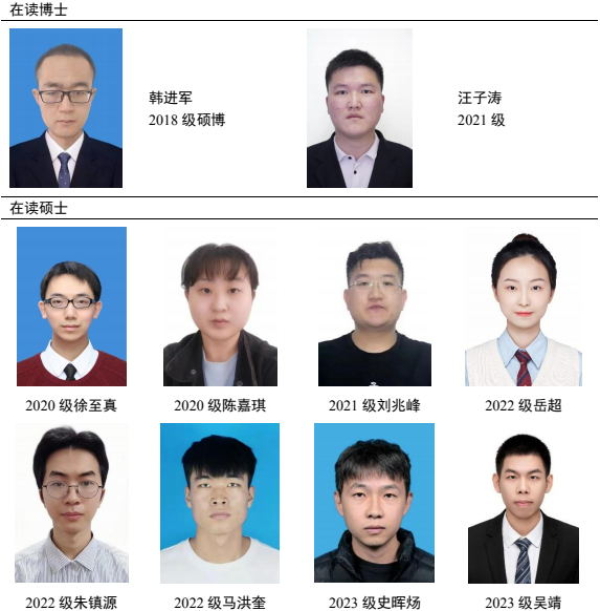 研究生:韩进军、汪子涛、徐至真、陈嘉琪、刘兆峰、岳超、朱镇源、马洪奎、史晖炀、吴靖
