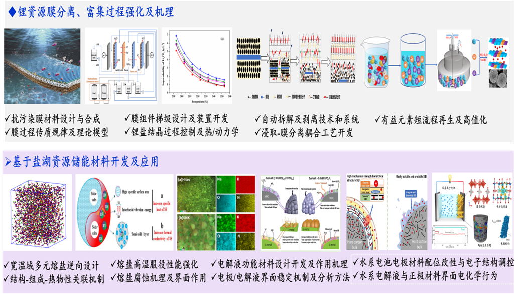 课题组现有人员29人,固定人员20人(包括研究员1人,副研究员8人),博士研究生4人,硕士研究生6人,临聘人员2人。建有高镁锂比盐湖锂镁分离膜与膜过程试验平台、连续离子交换分离试验平台、多级萃取分离中试平台、熔盐储能材料性能测试平台、锂电池材料制备与性能评估、废旧锂电池绿色回收试验平台。研究方向:锂资源分离、富集过程强化及机理,基于盐湖资源储能材料开发及应用。