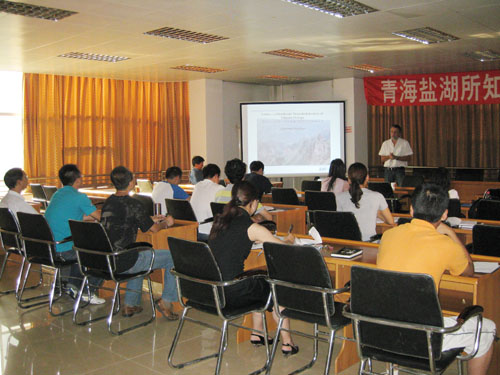 2010年07月28日上午在青海盐湖所六楼会议室, Frechen教授做了题为《Loess- a Worldwide Terrestrial Archive of Climate Change》的报告。报告主要综述了黄土在全球环境变化研究中的作用和重要性,以及释光测年方法在黄土沉积物中的应用等。Frechen教授还为大家简要的展示了其在中亚、欧洲等地的相关工作。Tsukamoto博士做了题为《Introduction to Pulsed and Time-Resolved OSL and OSE》的报告,主要介绍了国际学术界在释光测年方法和仪器改进等方面的最新研究进展。