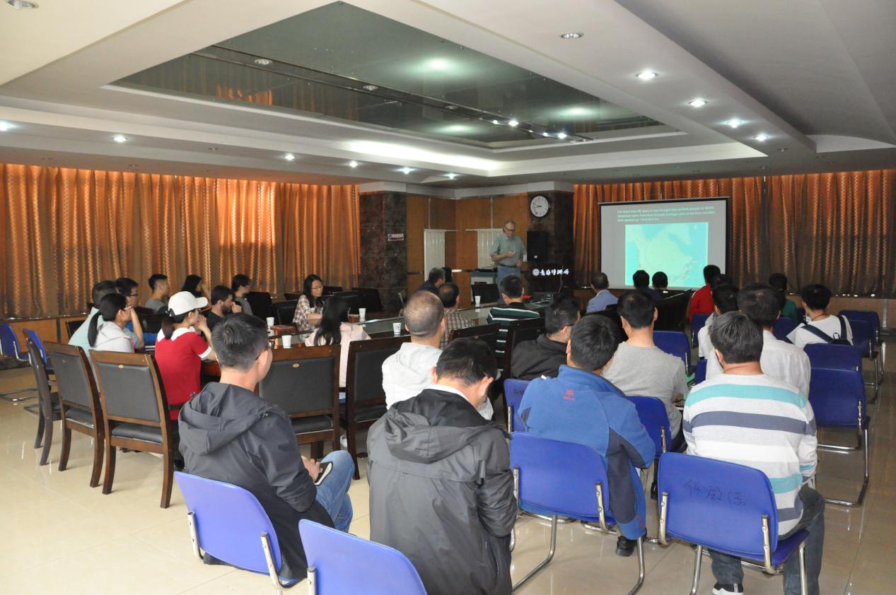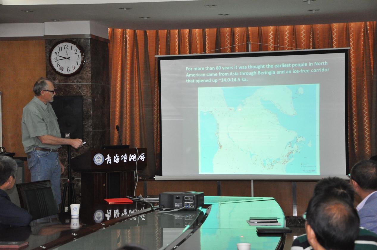 盐湖地质与环境实验室主任王建萍研究员主持了本次教授聘任仪式并致开幕词,马海州研究员为David B. Madsen教授颁发荣誉教授聘书并致词,David B. Madsen教授发表个人感言,感谢青海盐湖所给予此荣誉,特别感谢地学科研人员在10多年野外工作中提供的无私帮助和支持,最后David B. Madsen教授作了“Luminescence Dating of the Earliest Well-Documented Site in North America ”学术报告,并对老师和同学们提出的问题进行了详细的解答,David B. Madsen教授表示未来将继续与青海盐湖所保持友好的科研合作交流关系。