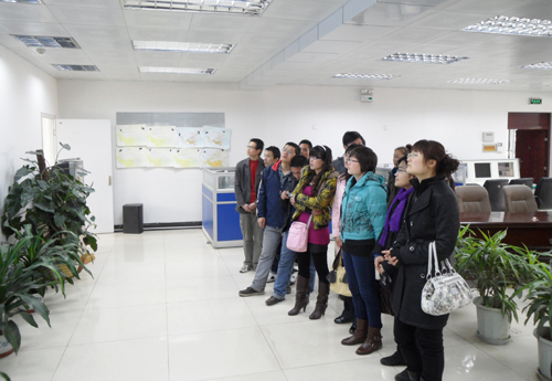 在讲解员的带领下,同学们先后参观了"天气预报制作中心",“气象灾害预报中心”,“气象指挥中心”和“青海省全天候气象监测中心”四个展厅。大部分同学都是第一次参加气象科普参观,对很多我们日常生活中遇到的气象现象非常好奇和不解,大家争相提问,也得到了专家的认真讲解和耐心回答。有些同学还现场当了一回天气预报员,亲身感受天气预报的整个制作过程。一些地球化学的同学还和专家们讨论气象专业方面的知识。当看到我国自己的"风云"气象卫星、青海省完备齐全的气象防灾设置、全方位立体式气象监测系统时,大家不禁有些感慨和赞叹,也为气象工作者为社会付出的努力而肃然起敬。