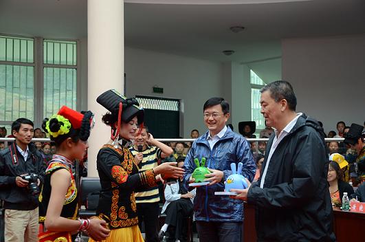 随后中国科学院计算机网络信息中心副主任、我要看世界项目组委会副主席戴博伟和深圳市慈善会专职副会长、“我要看世界”项目组委会主席范建华分表代表项目主办机构进行致辞,并与项目领跑人代表和当地青少年代表互赠礼物。
