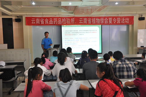 此次夏令营活动内容丰富,参观昆明植物所种子博物馆、标本馆、植物科普馆、植物化学与西部植物资源国家重点实验室、百草园等科普场所,活动还邀请了孙汉董院士做“天然药及西部植物资源”(由助手普建新代讲)、中科院昆明植物研究所副所长、国家重点室主任刘吉开研究员做“菌物天地”的科普专题讲座,同时还为小朋友准备了标本制作等趣味活动。此次活动为营员准备了《多姿多彩的云南野生菌》、《转基因问答》及《食品药品安全知识问答》3种科普手册,在家长和辅导员的带领下,各位营员自学相关知识,并准备在8月13日的闭营式参加知识竞赛。