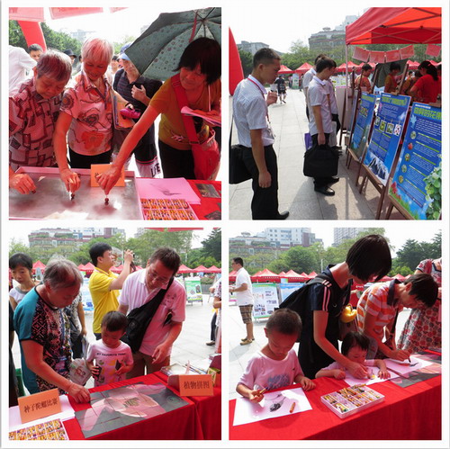 围绕“保护生态环境,建设美丽广东”的主题,华南植物园精心组织安排了一系列科普便民服务活动。活动现场,科普辅导员还为社区居民发放《萤火虫月下夜观》、《植物园观鸟》、《温室世界植物奇观》等科普宣传读物,并现场介绍世界植物王国相关科普知识;种子陀螺比赛引导孩子们关注身边不起眼的植物种子,让孩子认识普通的种子也能通过发挥创作力,摇身一变,成为手中的玩具;鸟类彩绘创作给孩子广阔的想象空间,让孩子有机会为鸟儿创作彩色“衣裳”。华南植物园还现场免费赠送了市民门票,“中秋”、“国庆”双节将至,市民可以到华南植物园参观盛大花展。