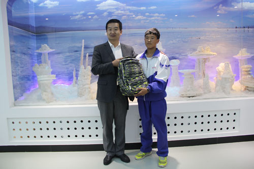活动当天,同学们聆听了一场由青海盐湖所科研人员主讲的科普讲座《盐湖的故事》,讲座通过通俗易懂的文字和语言、美丽的盐湖风光,结合科普视频展示,向同学们普及了什么是盐湖、盐湖是怎么形成的、盐湖的资源与价值等相关盐湖知识,使同学们与盐湖世界的距离由远及近,对盐湖科技产生了浓厚的兴趣。讲座结束后,项目组给每位同学赠送了一份爱心礼物,包括书包、文具等学习用品,鼓励他们好好学习,放飞梦想,将来做一个对国家、对社会有用的人才。