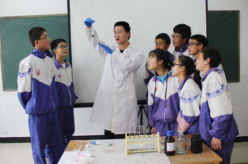 活动当天,青海盐湖所的博士团还为同学们展示了一系列微科研:如何在水下让火光四射、怎样认识酸和碱、碘的萃取分离等实验,同学们在惊叹的同时,也对神奇的化学充满了好奇心,纷纷走上讲台,饶有兴趣地体验了一下微科研的感觉,亲自见证了奇迹的发生。