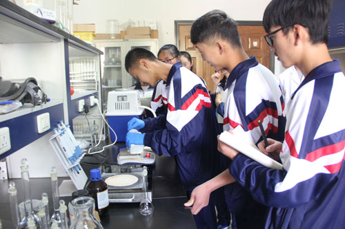 随后,在青海盐湖所年轻科研人员和博士的带领下,同学们根据个人兴趣选题、分八组各自参与了一个完整的科研小课题,开展了一系列小实验,体验了一把“微科研”过程。实验内容涵盖锂离子电池的制作、彩色温度计的制作、明矾的制备、火山爆发等,实验紧扣盐湖主题,同学们非常珍惜这次机会,在富有经验的老师指导下,团队紧密合作,明确分工,认真并饶有兴趣地亲自动手操作,并完成了多媒体总结报告。